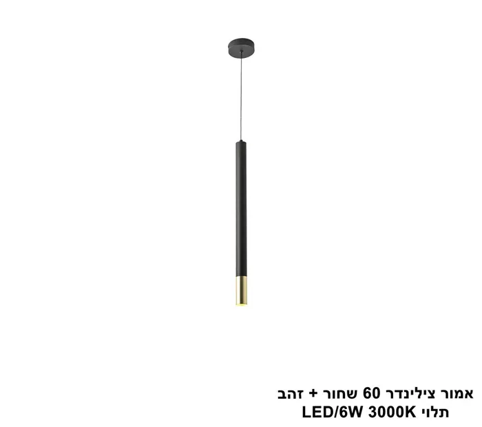 אמור צילינדר 60 שחור + זהב תלוי LED (25730)