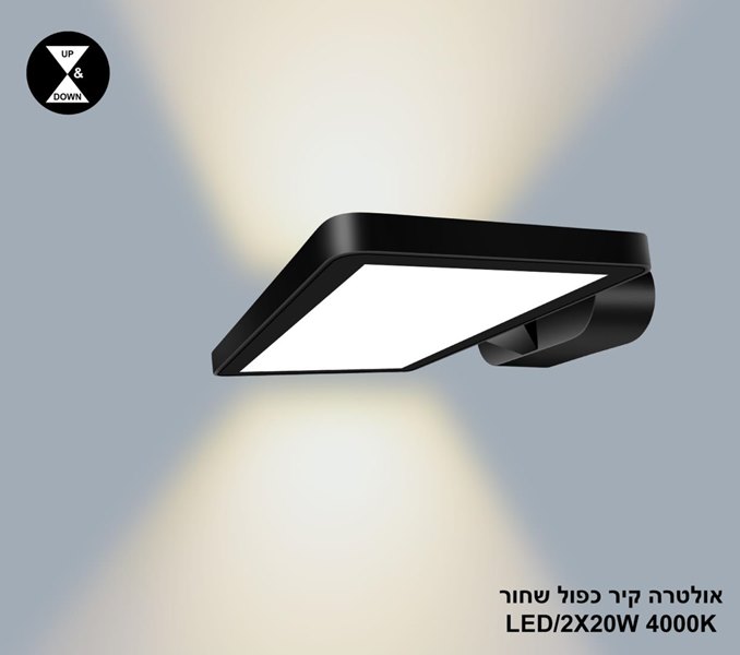 ***אולטרה קיר כפול LED 2*20W שחור 4000K (24405)