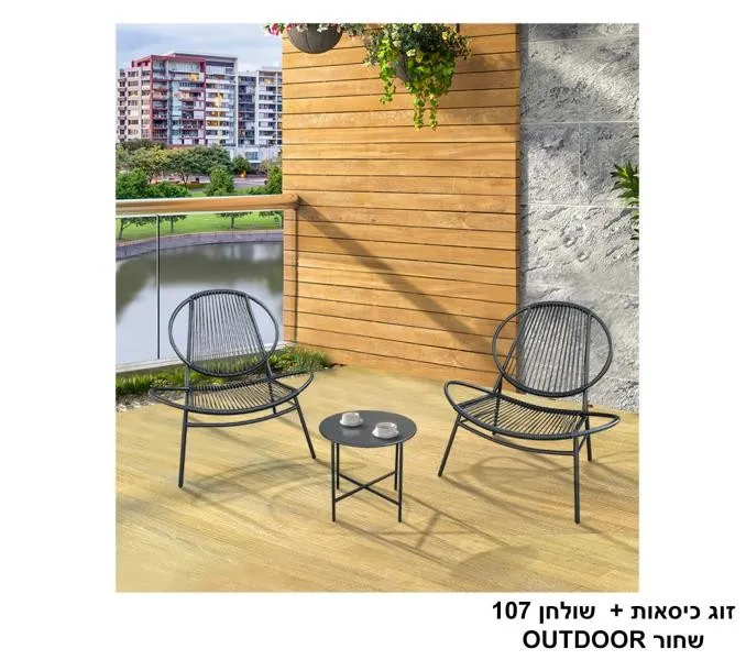 זוג כיסאות + שולחן 107 שחור OUTDOOR.